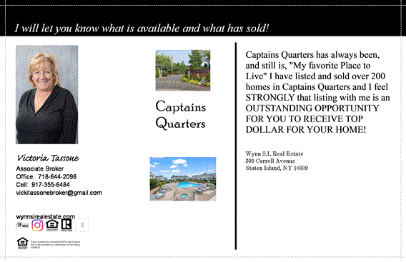 VICKI TASSONE NYS LICENSED ASSOCIATE BROKER EXCLUSIVE BROKER FOR CAPTAINS QUARTERS Share this: Share on Facebook (Opens in new window) Facebook Email a link to a friend (Opens in new window) Email Share on X (Opens in new window) X Share on Reddit (Opens in new window) Reddit Print (Opens in new window) Print Like Loading...